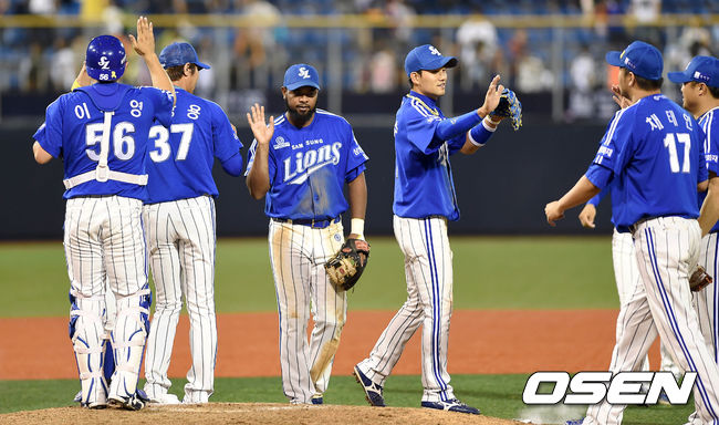 경기 종료 후 삼성 선수들이 승리의 기쁨을 나누고 있다./sunday@osen.co.kr