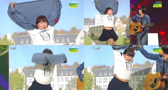 22일 오후 방송된 KBS 2TV '개그콘서트'의 '선배, 선배!' 코너에서는 이수지가 지연의 '1분1초'에 맞춰 박쥐춤을 소화하는 모습이 그려졌다.