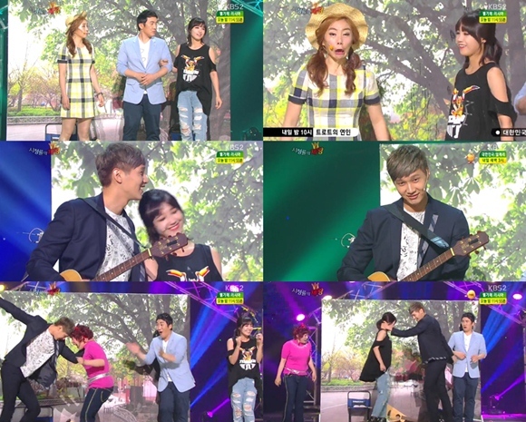 이날 정은지는 이상훈의 약혼녀로 출연했다. 정은지는 에이핑크의 '미스터 츄'를 트로트로 소화하는 등 KBS 2TV 새 월화드라마 '트로트의 연인'을 홍보했다. 뿐만 아니라 허안나에게 물을 뿌리는 악녀 연기도 훌륭하게 소화했다.