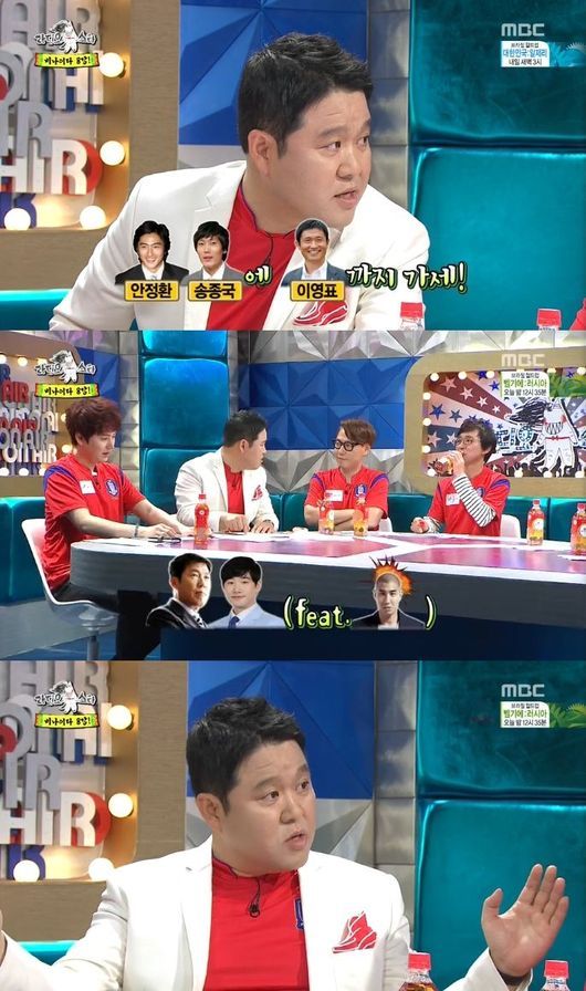 김구라는 22일 오후 방송된 MBC 예능프로그램 '황금어장-라디오스타'(이하 '라디오스타')월드컵 특집 오프닝에서 "안정환 송종국에 이영표까지 가세해서 세대교체 이뤄졌다. 이영표 잘하더라"라고 중계를 분석했다.