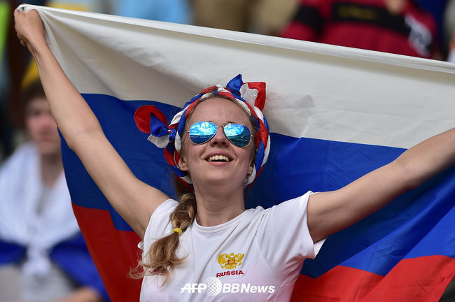 [OSEN=사진팀] 23일 오전(한국시간) 브라질 리우 데 자네이루 에스타디오 두 마라카낭에서 '2014 브라질 월드컵' H조 조별예선 2차전 벨기에와 러시아의 경기가 진행될 가운데 러시아 여성팬이 응원전을 펼치고 있다.