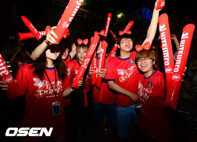 '2014 브라질 월드컵' 대한민국과 알제리 H조 조별리그 2차전이 열리는 23일 오전 서울 광화문광장에서 길거리 응원전, 축구팬들이 열띤 응원을 펼치고 있다.