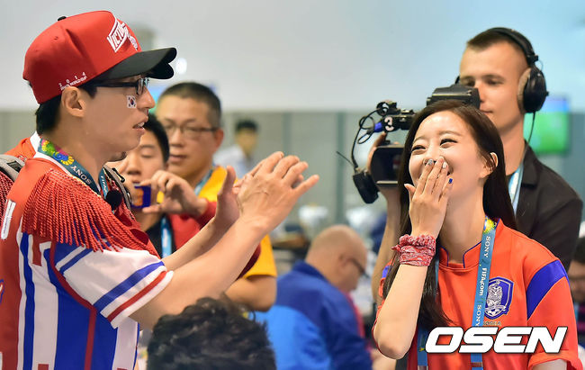 23일(이하 한국시간) 브라질 르투 알레그레 에스타디오 베이라-리오에서 2014 브라질 월드컵 조별리그 H조 대한민국과 알제리의 경기가 진행될 가운데 MBC 중계팀을 찾은 유재석이 이재은 아나운서와 이야기를 하고 있다.