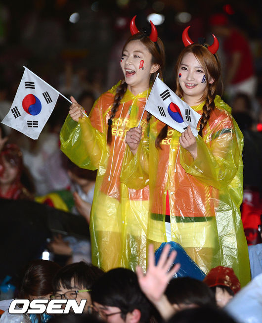 '2014 브라질 월드컵' 대한민국과 알제리 H조 조별리그 2차전이 열리는 23일 오전 서울 광화문광장에서 길거리 응원전, 축구팬들이 열띤 응원을 펼치고 있다.