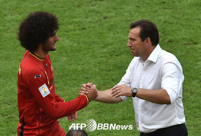 벨기에 빌모츠 감독과 펠라이니가 인사를 나누고 있다./photo@osen.co.kr
