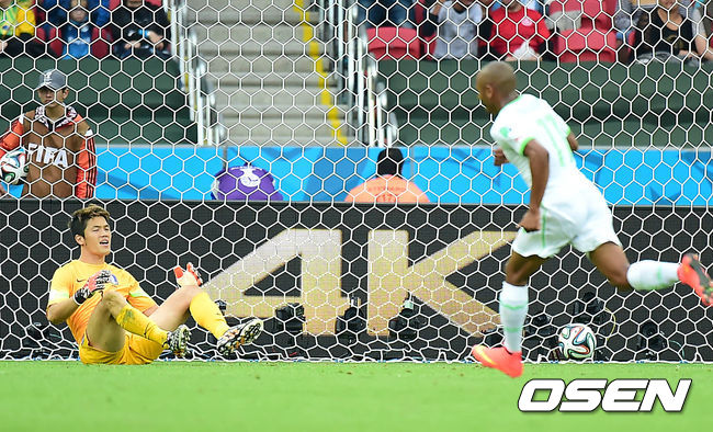 전반 알제리 이슬람 슬리마니의 선제골에 한국 정성룡이 아쉬운 표정을 짓고 있다.