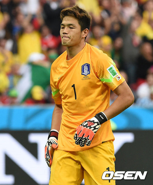 전반 알제리에게 세 골을 허용한 한국 골키퍼 정성룡이 아쉬운 표정을 짓고 있다.