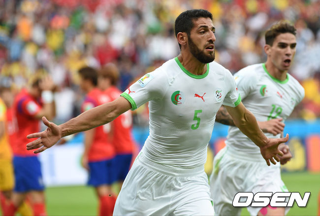 전반 알제리 라피크 할리시가 헤딩으로 팀의 두 번째 골을 터트린 뒤 환호하고 있다.