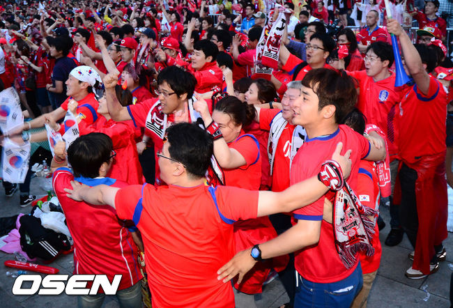 대한민국과 알제리의 2014 FIFA 월드컵 H조 조별예선이 열린 23일 오전 서울 광화문광장에서 길거리 응원전이 펼쳐졌다.
