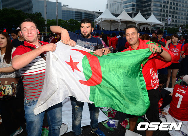 대한민국과 알제리의 2014 FIFA 월드컵 H조 조별예선이 열린 23일 오전 서울 삼성동 코엑스 사거리 영동대로에서 길거리 응원전이 펼쳐졌다.