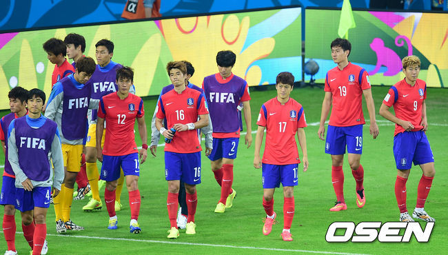 홍명보 감독이 이끄는 한국 축구대표팀은 23일(이하 한국시간) 포르투 알레그리에 위치한 베이라 히우 경기장서 열린 알제리와 2014 브라질 월드컵 조별리그 2차전서 2-4로 패 배했다. 1무 1패(승점 1점)를 기록한 한국은 골득실에서 밀려 H조 최하위로 떨어졌다. 한국은 오는 27일 벨기에와 3차전에서 승리하지 못하면 16강 진출은 불가능하다.