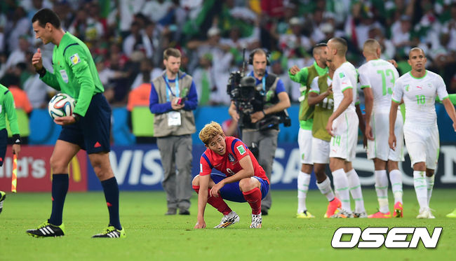 홍명보 감독이 이끄는 한국 축구대표팀은 23일(이하 한국시간) 포르투 알레그리에 위치한 베이라 히우 경기장서 열린 알제리와 2014 브라질 월드컵 조별리그 2차전서 2-4로 패 배했다. 1무 1패(승점 1점)를 기록한 한국은 골득실에서 밀려 H조 최하위로 떨어졌다. 한국은 오는 27일 벨기에와 3차전에서 승리하지 못하면 16강 진출은 불가능하다.