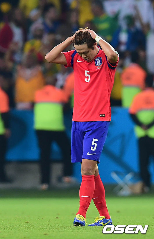 홍명보 감독이 이끄는 한국 축구대표팀은 23일(이하 한국시간) 포르투 알레그리에 위치한 베이라 히우 경기장서 열린 알제리와 2014 브라질 월드컵 조별리그 2차전서 2-4로 패 배했다. 1무 1패(승점 1점)를 기록한 한국은 골득실에서 밀려 H조 최하위로 떨어졌다. 한국은 오는 27일 벨기에와 3차전에서 승리하지 못하면 16강 진출은 불가능하다.