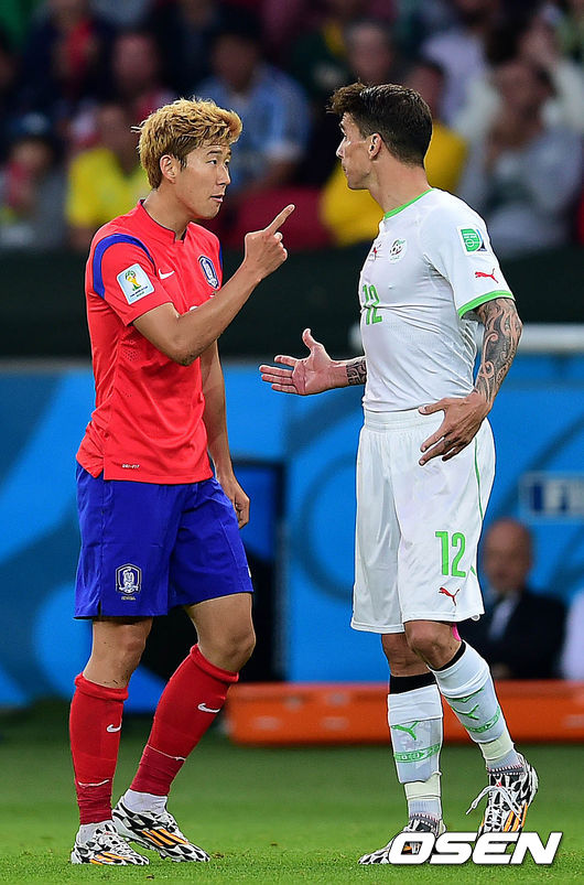 후반 한국 손흥민이 알제리 칼 메자니와 날카로운 신경전을 벌이고 있다./rumi@osen.co.kr