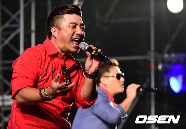 경기에 앞서 가수 캔이 멋진 무대를 선보이고 있다.