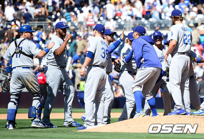 승리를 거둔 다저스 선수들이 기뻐하고 있다./youngrae@osen.co.kr