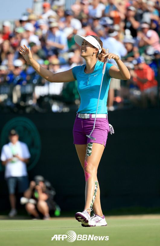 미셀위는 2005년 프로로 전향해 9년 만에 처음 메이저대회 우승컵을 품에 안았다.