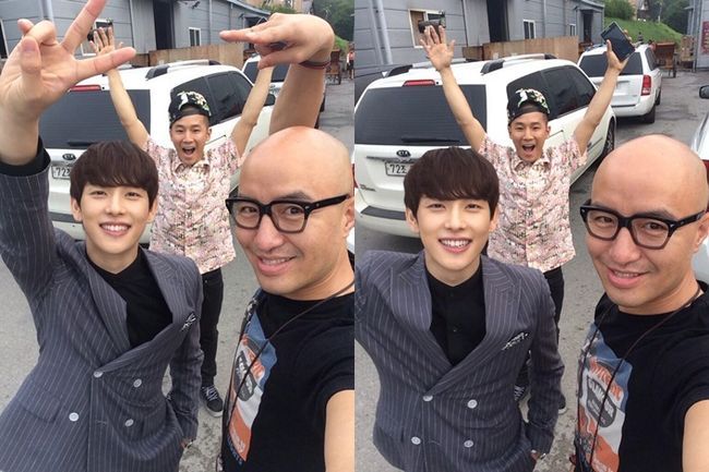 [OSEN=정소영 인턴기자] 방송인 홍석천이 MBC 드라마 ‘트라이앵글’ 촬영장에 방문해 임시완, 쇼리와 함께 찍은 인증샷을 공개했다.
