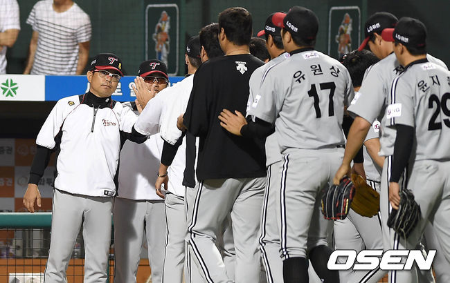 경기 종료 후 LG 양상문 감독이 선수들과 승리의 기쁨을 나누고 있다./sunday@osen.co.kr