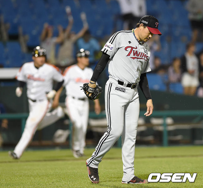 9회말 2사 만루에서 LG 봉중근이 한화 정범모를 외야플라이로 처리하고 있다./sunday@osen.co.kr