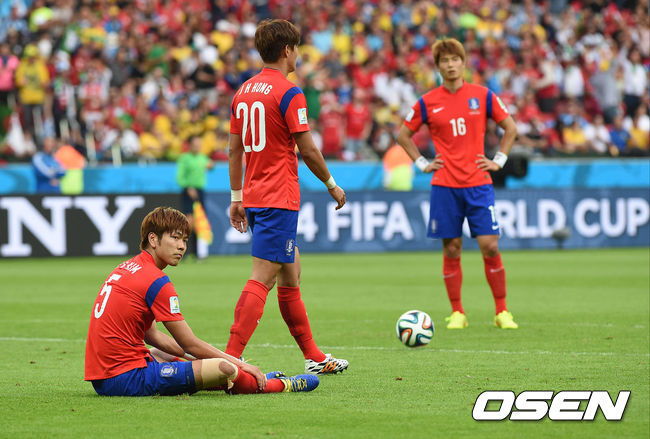 한국은 23일(이하 한국시간) 열린 2014 브라질 월드컵 H조 조별리그 2차전 알제리와의 경기에서 전반전에만 3골을 허용하며 무력한 경기를 펼친 끝에 2-4로 패했다. 한국은 1무1패를 기록, 자력 16강 진출이 어려워졌다.