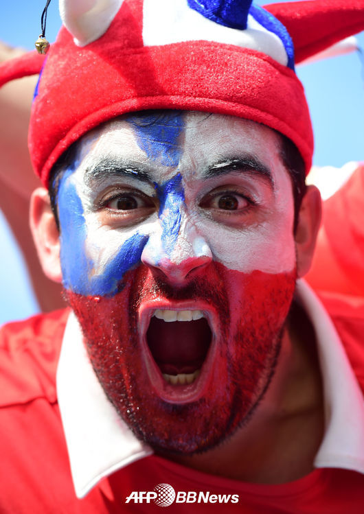 칠레 남성팬에 열정적인 응원을 선보이고 있다.