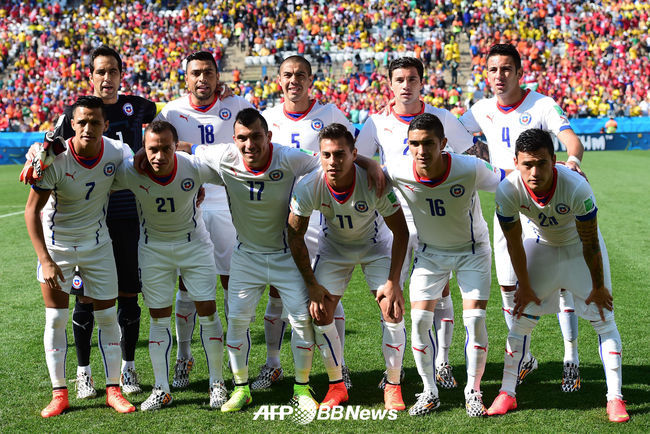 경기에 앞서 칠레 베스트 11이 포토타임을 갖고있다.