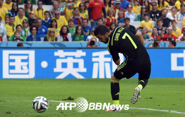 전반 스페인 다비드 비야가 선제골을 넣고 있다.