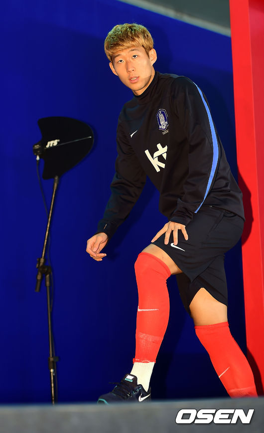 24일 오전(이하 한국시간) 홍명보 감독이 이끄는 축구국가대표팀이 브라질 이구아수의 페드로 바소경기장에서 훈련을 가졌다. 훈련 전 손흥민이 기자회견장으로 입장하고 있다.