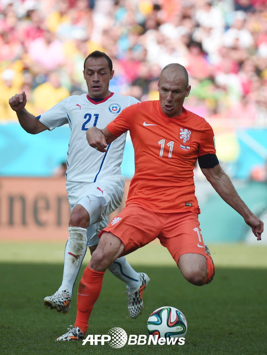 [OSEN=사진팀] '오렌지 군단' 네덜란드가 '난적' 칠레를 제압하고 3연승을 질주하며 선두로 16강에 올랐다.
