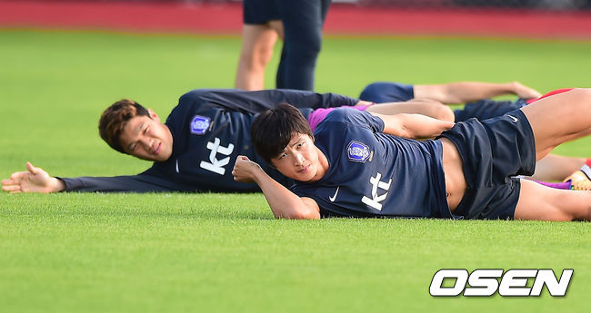 24일 오전(이하 한국시간) 홍명보 감독이 이끄는 축구국가대표팀이 브라질 이구아수의 페드로 바소경기장에서 훈련을 가졌다. 곽태휘가 몸을 풀고 있다.