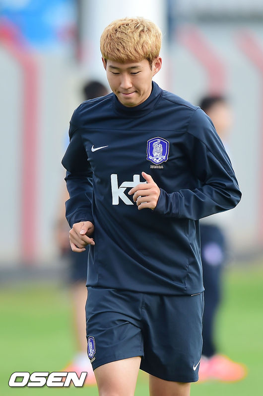 24일 오전(이하 한국시간) 홍명보 감독이 이끄는 축구국가대표팀이 브라질 이구아수의 페드로 바소경기장에서 훈련을 가졌다. 손흥민이 러닝훈련을 하며 고개를 떨구고 있다.