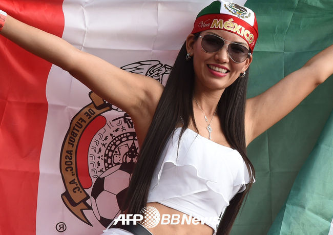 멕시코 여성팬이 열정적인 응원을 선보이고 있다.