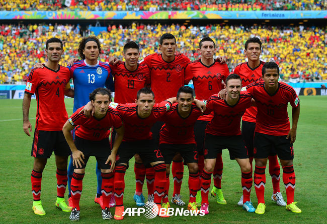 전형적인 5-3-2 전술을 들고 나온 멕시코는 특별한 변화 없이 이번 경기에 임했다. 오초아 골키퍼와 수비라인의 핵심인 마르케스를 중심으로 왼쪽부터 라윤, 모레노, 로드리게스, 아길라르가 수비 라인을 형성했다. 허리에는 에레라, 바스케스, 과르다도가, 전방에는 도스 산토스와 페랄타가 나섰다.
