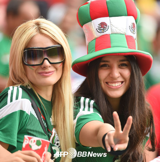 멕시코 여성팬이 열정적인 응원을 선보이고 있다.