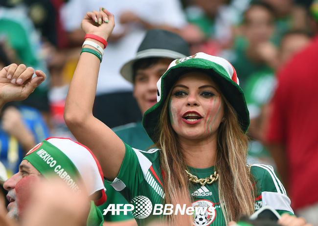멕시코 여성팬이 열정적인 응원을 선보이고 있다.