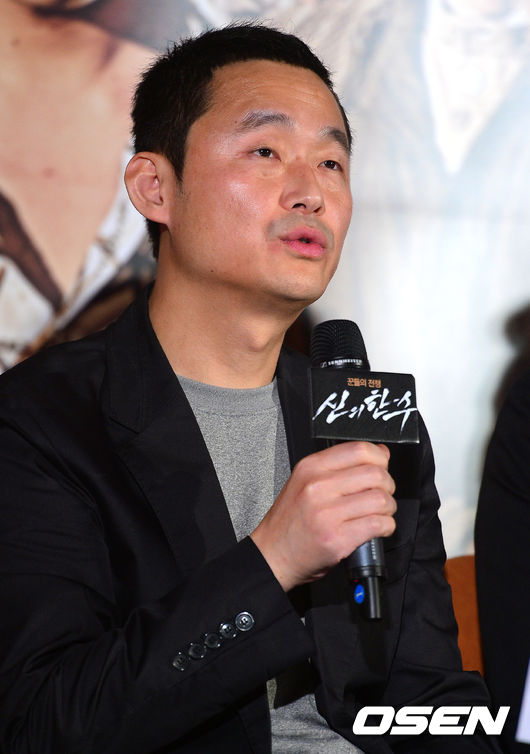 24일 오후 서울 동대문 메가박스에서 진행된 '신의 한수'(감독 조범구) 언론시사회에서 조범구 감독이 질문에 답하고 있다
