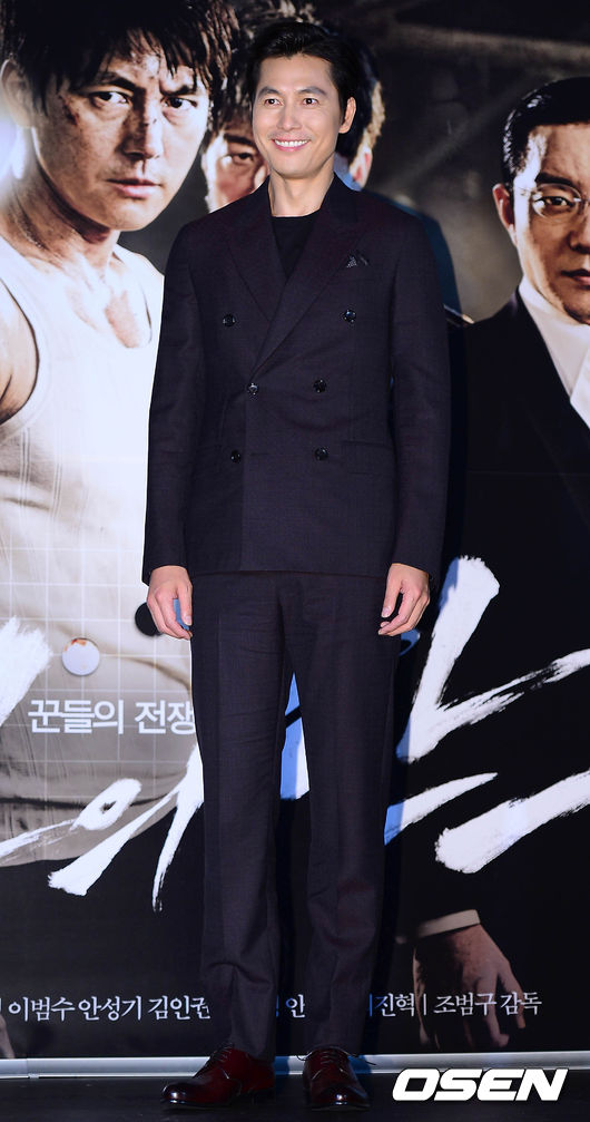 24일 오후 서울 동대문 메가박스에서 진행된 '신의 한수'(감독 조범구) 언론시사회에서 배우 정우성이 환하게 웃으며 포즈를 취하고 있다.