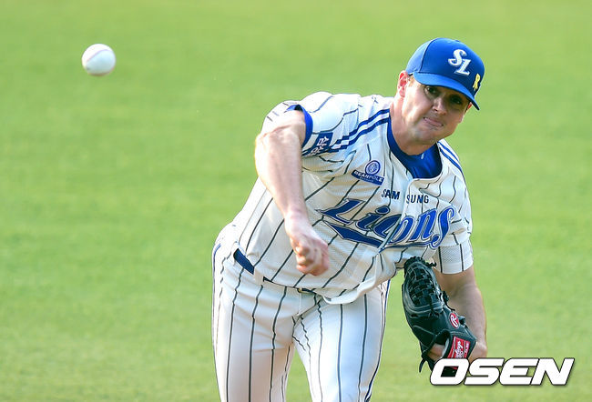 1회초 삼성 밴덴헐크가 역투하고 있다.
