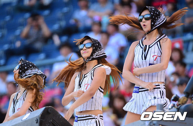 24일 오후 서울 잠실구장에서 열린 2014 한국야쿠르트 세븐 프로야구 LG 트윈스와 NC 다이노스의 경기, LG 치어리더가 멋진 무대를 펼치고 있다.