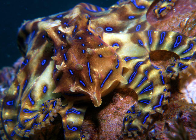 파란고리문어(Hapalochlaena lunulata)는 아열대성 문어는 10㎝ 내외(밤송이 크기)의 작은 크기지만, 복어류가 가지고 있는 테트로도톡신의 맹독을 지닌 종이다. 1㎎의 맹독은 사람을 치사시킬 수 있는 양이며, 적은 양의 독에 노출되더라도 신체마비, 구토, 호흡곤란 등을 유발시킬 수 있다. 또한, 몸 표면의 점액과 먹물 등에도 독성물질을 함유하고 있으므로 맨손으로 파란고리문어를 잡지 않도록 각별한 주의가 요구된다.