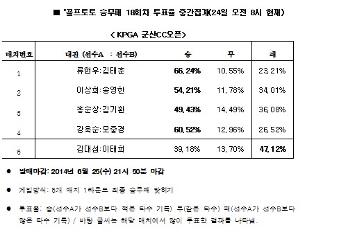 KPGA 군산CC 오픈 1라운드 대상 승무패18회차 중간집계 결과