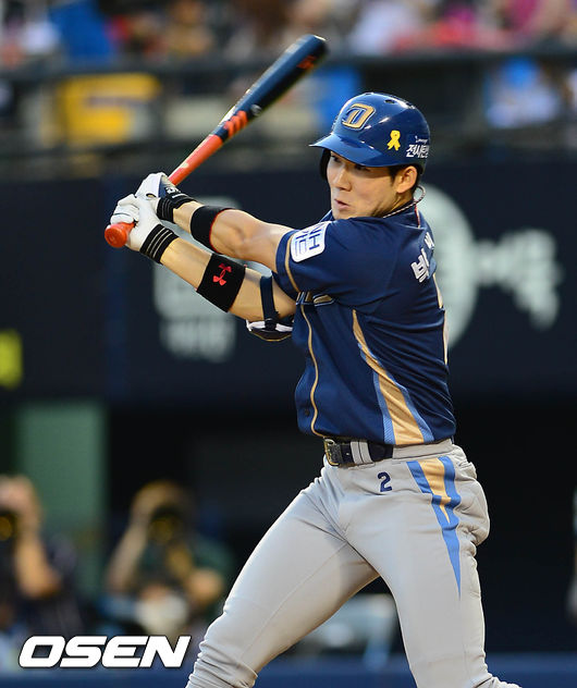 24일 오후 서울 잠실구장에서 열린 2014 한국야쿠르트 세븐 프로야구 LG 트윈스와 NC 다이노스의 경기, 3회초 1사 1,2루 박민우가 2타점 3루타를 치고 있다.