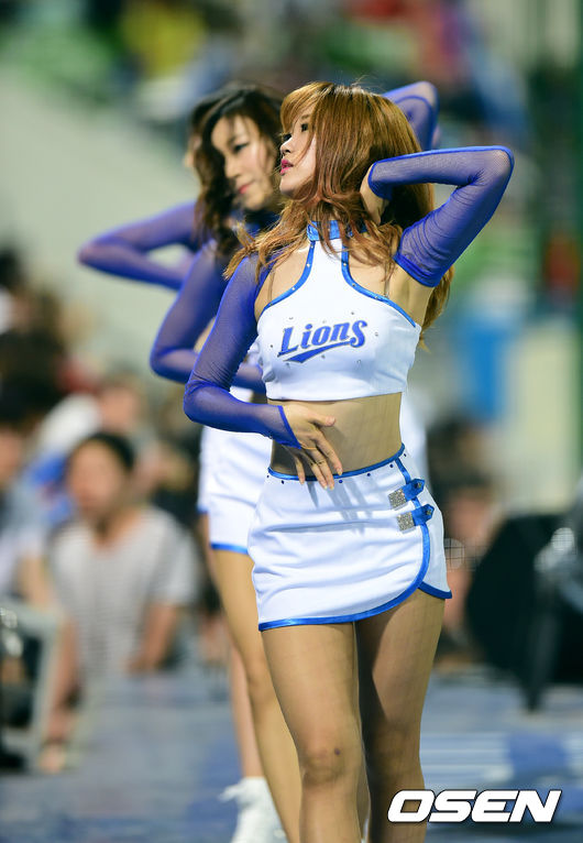 삼성 치어리더가 열띤 응원을 선보이고 있다.