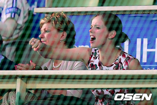 삼성 밴덴헐크 아내 애나가 열띤 응원을 하고 있다.