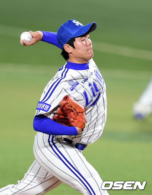 7회초 마운드에 오른 삼성 이수민이 역투하고 있다.