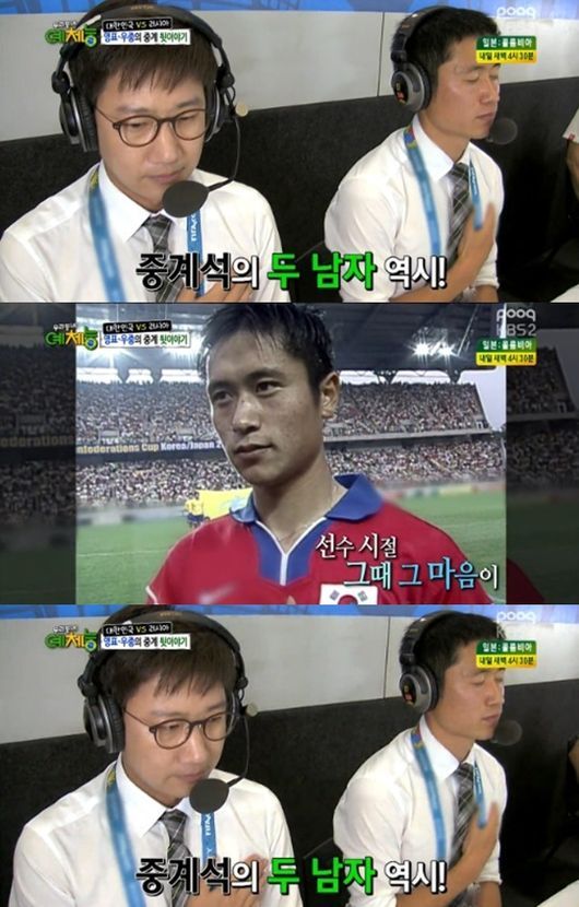 24일 방송된 KBS 2TV 예능프로그램 '우리동네 예체능'에서는 이영표와 조우종의 중계 뒷이야기가 공개됐다.