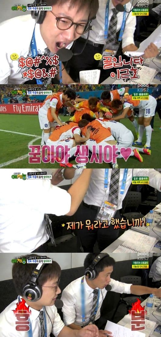24일 방송된 KBS 2TV 예능프로그램 '우리동네 예체능'에서는 이영표와 조우종의 중계 뒷이야기가 공개됐다.
