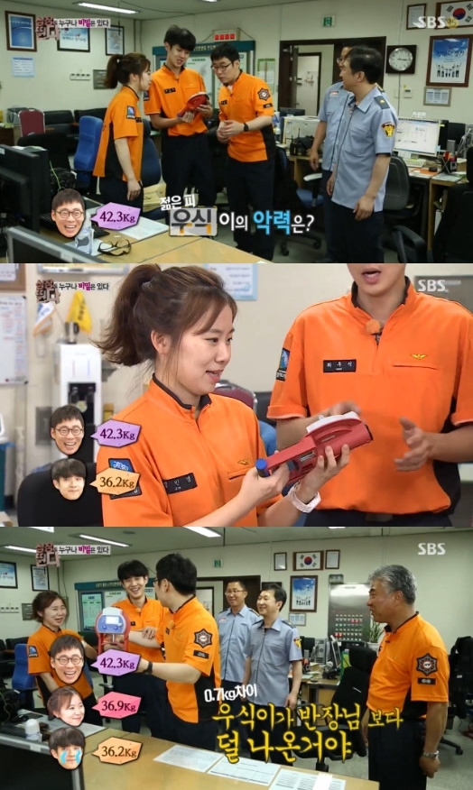 악력 대결에 참가한 유일한 여성인 진민경 대원 36.9kg로 최우식보다 0.7kg나 더 높은 수치가 나왔다. 이에 장동혁은 “우식이가 반장님보다 덜 나왔다”며 최우식을 놀렸다. 믿을 수 없는 결과에 최우식은 좌절했다.