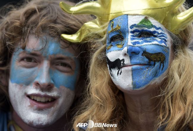 [OSEN=사진팀] 25일(한국시간) 브라질 나타우의 에스타디오 다스 두 나스에서 열리는 '2014 브라질 월드컵' D조 3차전 이탈리아와 우루과이의 경기에 앞서 팬들이 응원을 하고 있다.